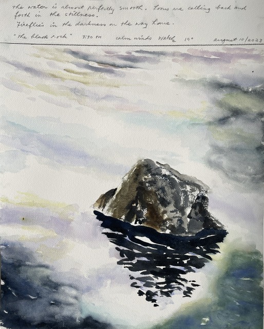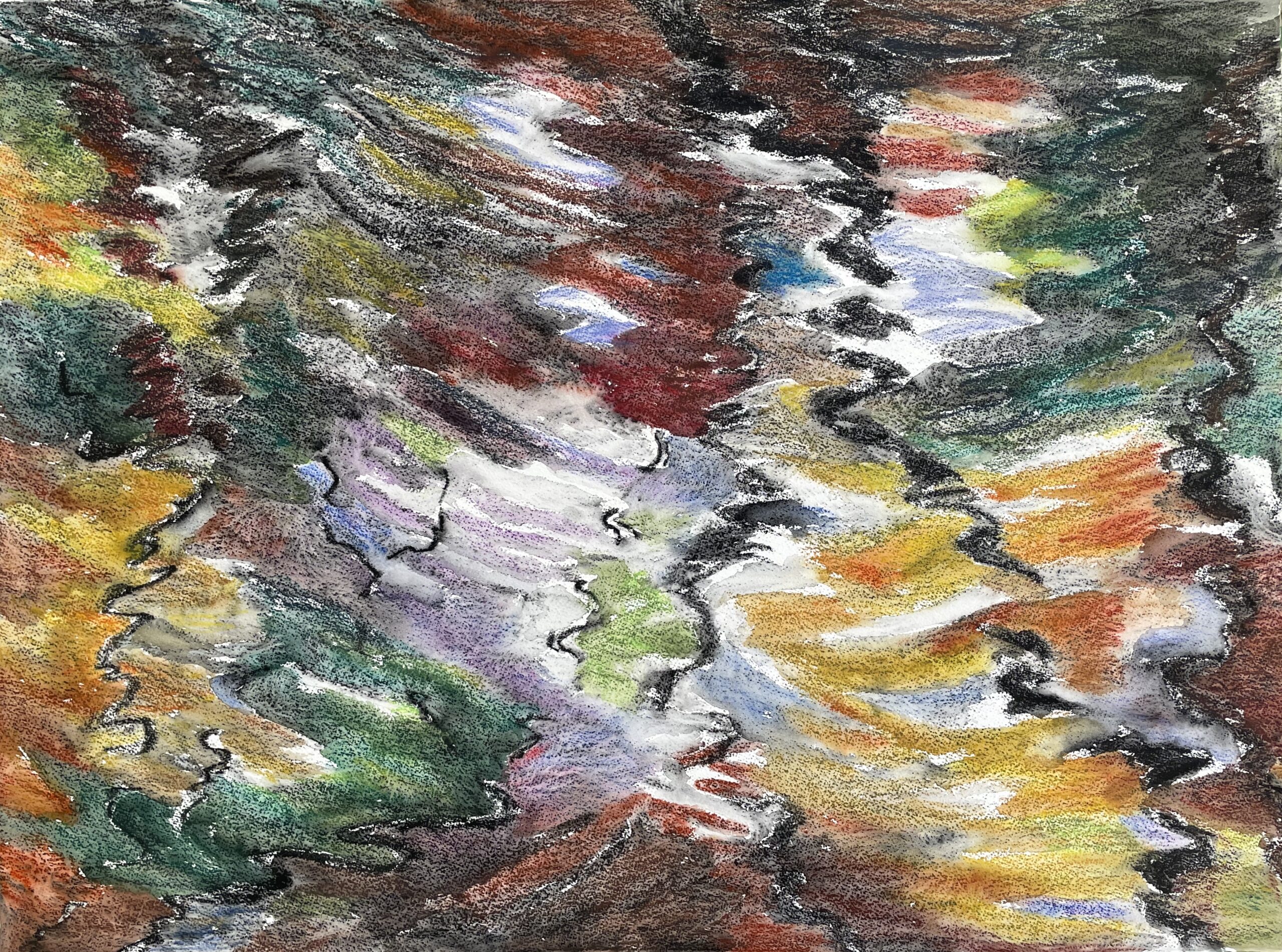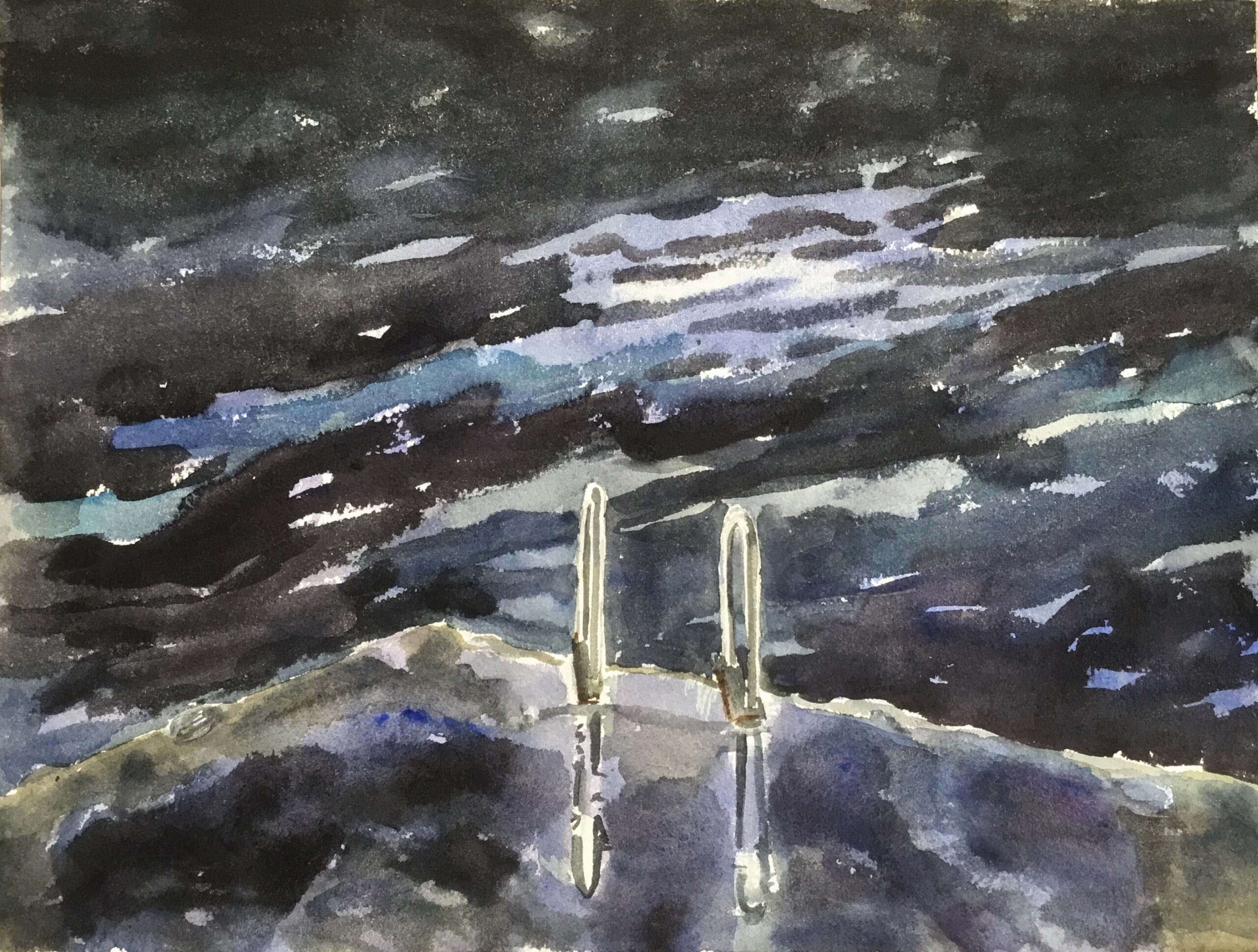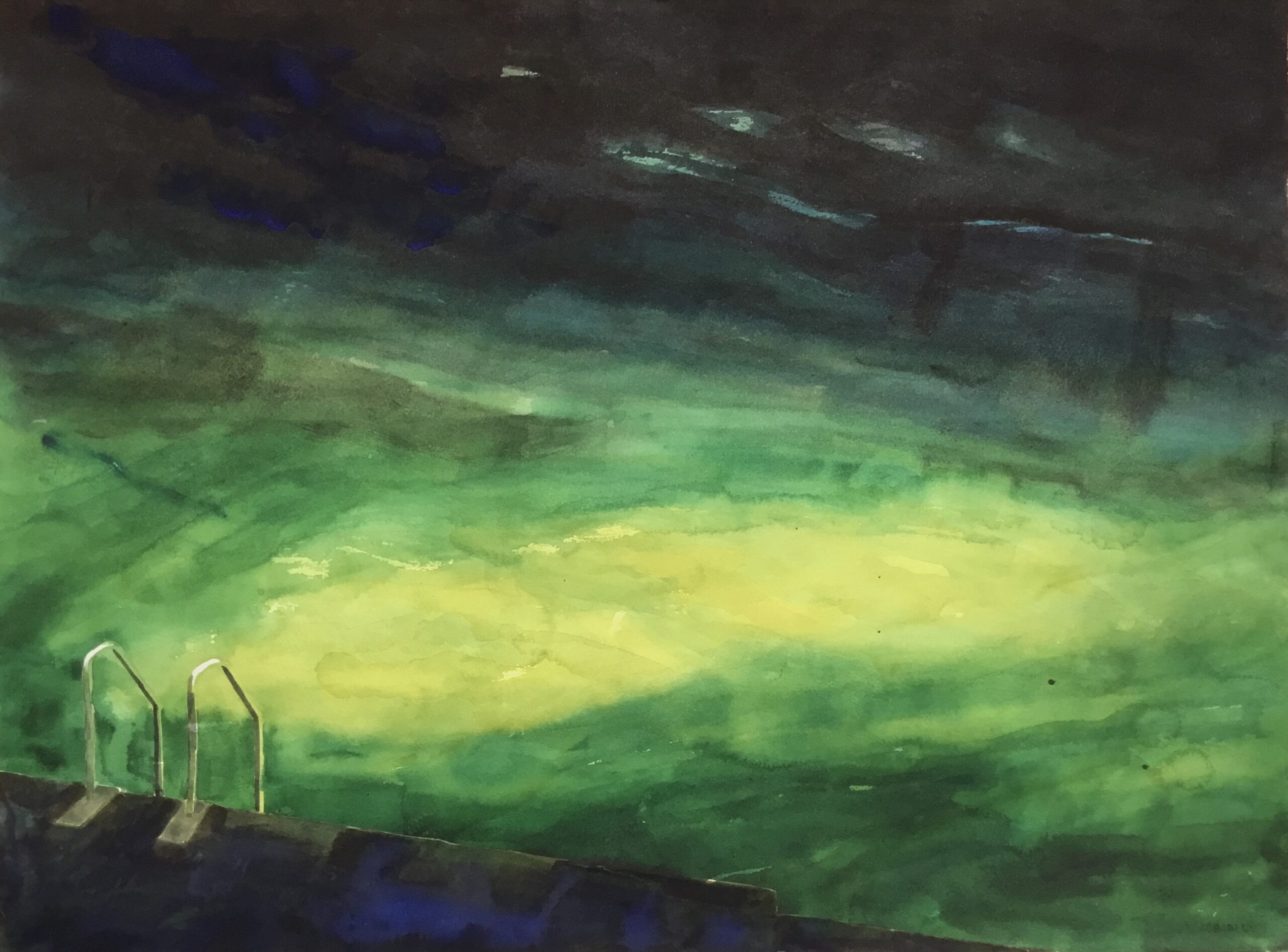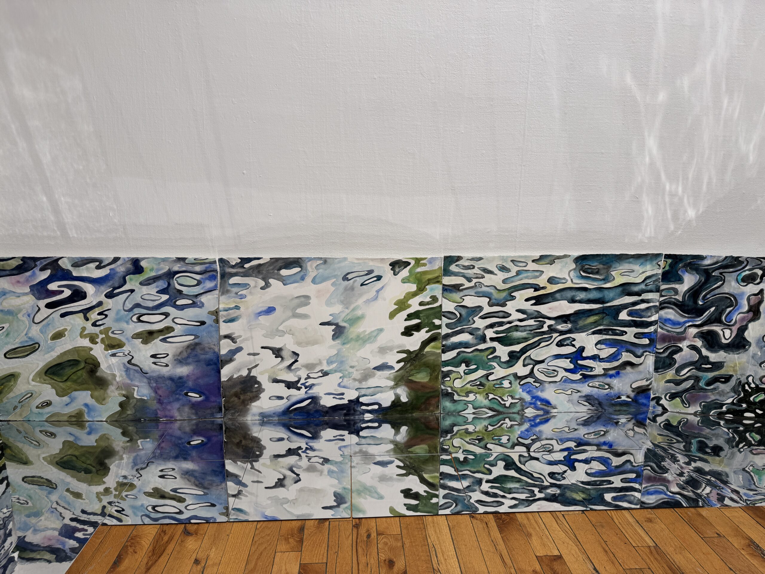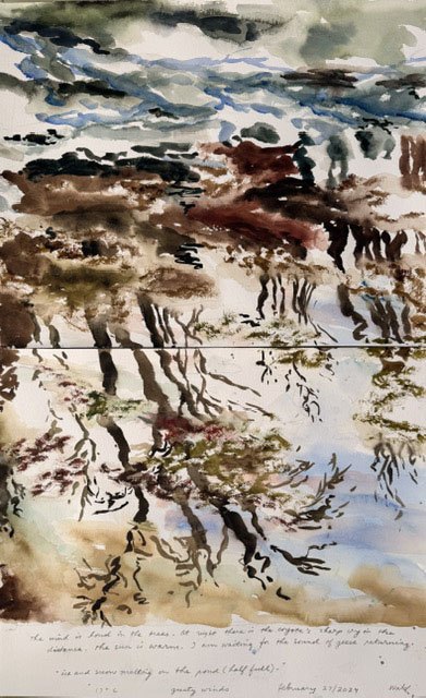 This body of work was done in various locations over a period of several years. The challenge of working on-site helps stimulate both a connection with the subject and an awareness of its energy and vibrancy. In each painting I attempt to transmit a feeling of the primal forces at work within the essential element of water. Water has the power to both nourish and destroy; to change or demolish a landscape. As the 5th century BCE Taoist philosopher Lao Tzu wrote, ‘‘What is softer, more fluid, than water? But water will wear away rock, which is rigid and cannot yield…what is soft is strong.’’ Water is affected by many forces, including the season, weather conditions, temperature, and time of day. It is constantly shifting and changing. Therefore every stroke of watercolour is capturing only one particular moment, and changes in humidity, light level, time of day, etc. will change what is happening with the subject. Each colour, shape, movement, reflection or ripple is only visible for an instant. The painting then becomes a record of a constantly shifting reality rather than a snapshot of a fixed time and place. Moreover, because of its mutable and transient nature, the subject of water can itself become a canvas upon which the artist can transmit emotional, psychological or philosophical states. Water then becomes a metaphor for the fragile nature of our existence.
