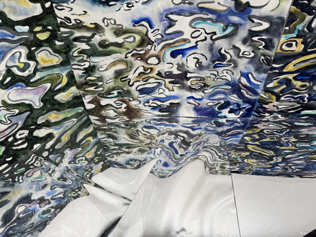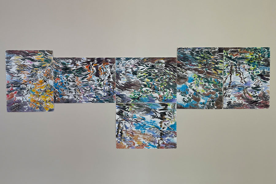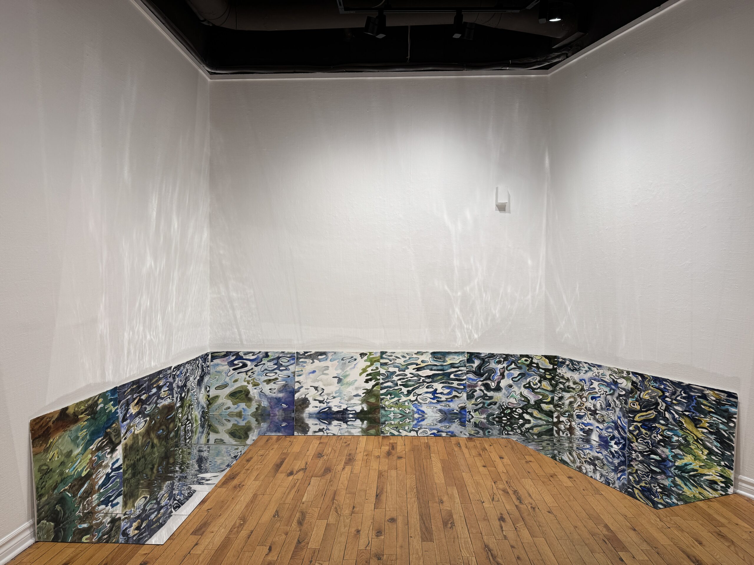 Les tableaux récents renvoient à une étude tout au long de la vie de la façon dont le moment présent change constamment, soit visiblement comme les réflexions chatoyantes sur l’eau, soit métaphysiquement dans l’expérience de la fuite du présent. En raison de sa nature mutable et fluctuante, l’eau elle-même peut devenir la toile à laquelle l’artiste peut transmettre ses états émotionnels, psychologiques ou philosophiques. L’eau devient alors une métaphore de la nature fragile de notre existence.