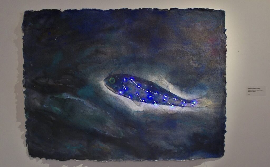 (last two images 30″ x 40″ Multimedia: acrilic on hand-made paper, copper LED wire, batteries /
