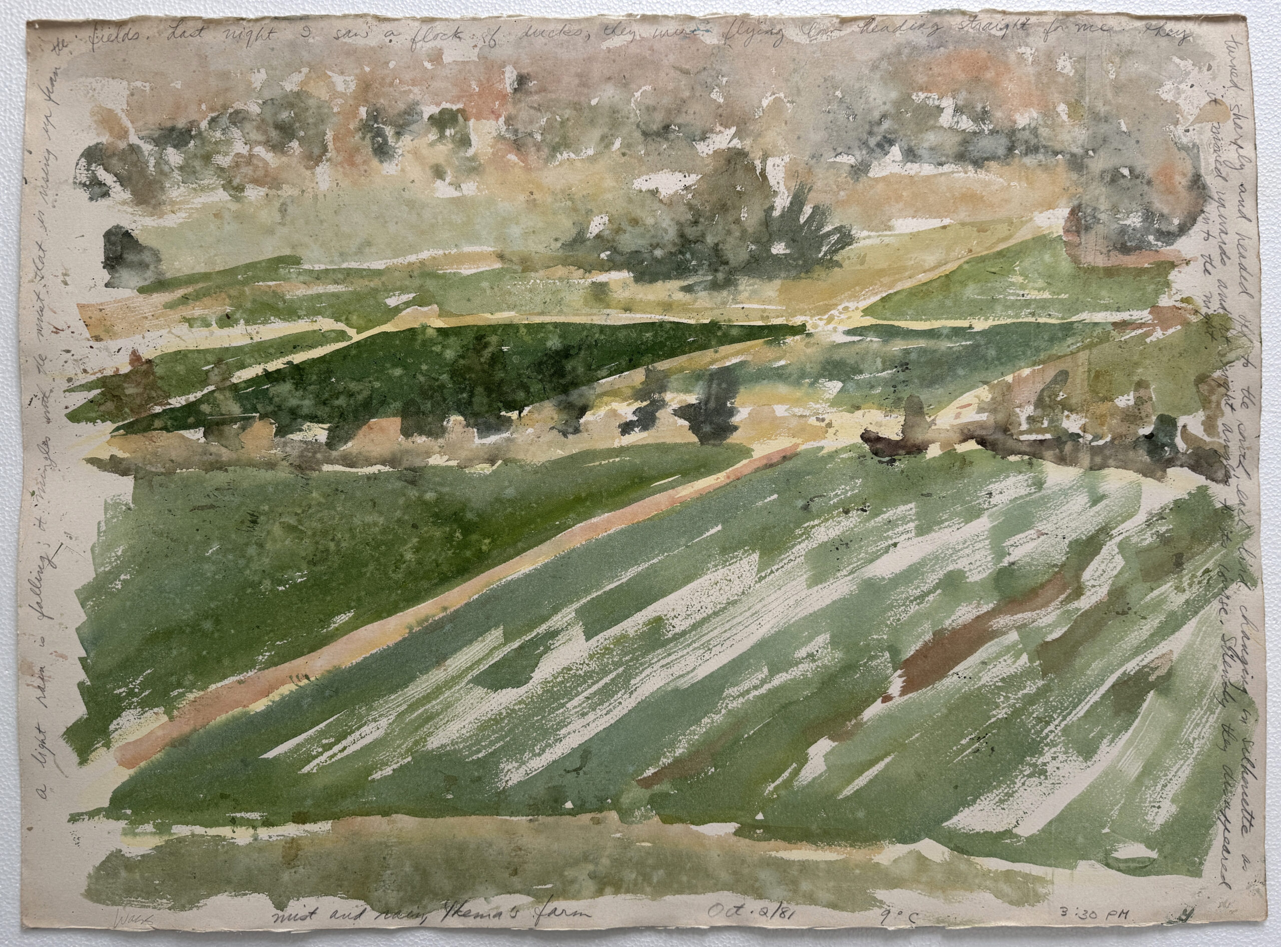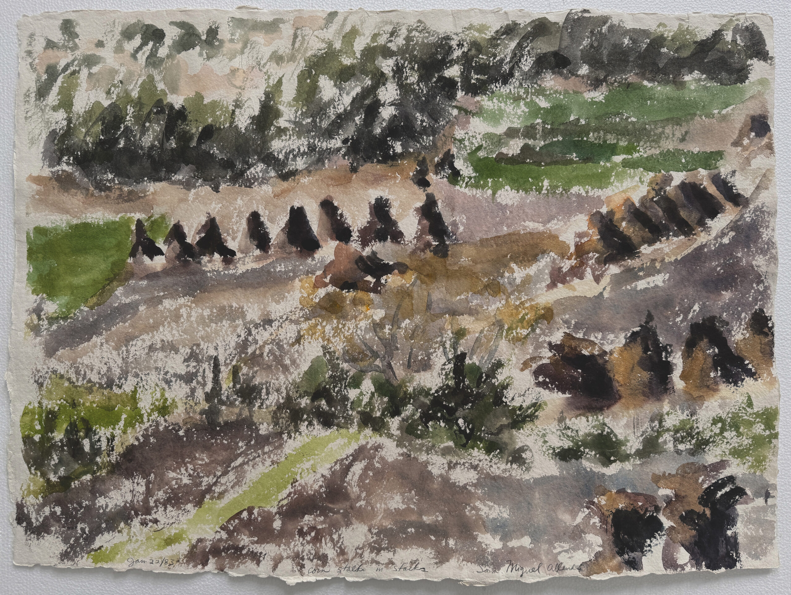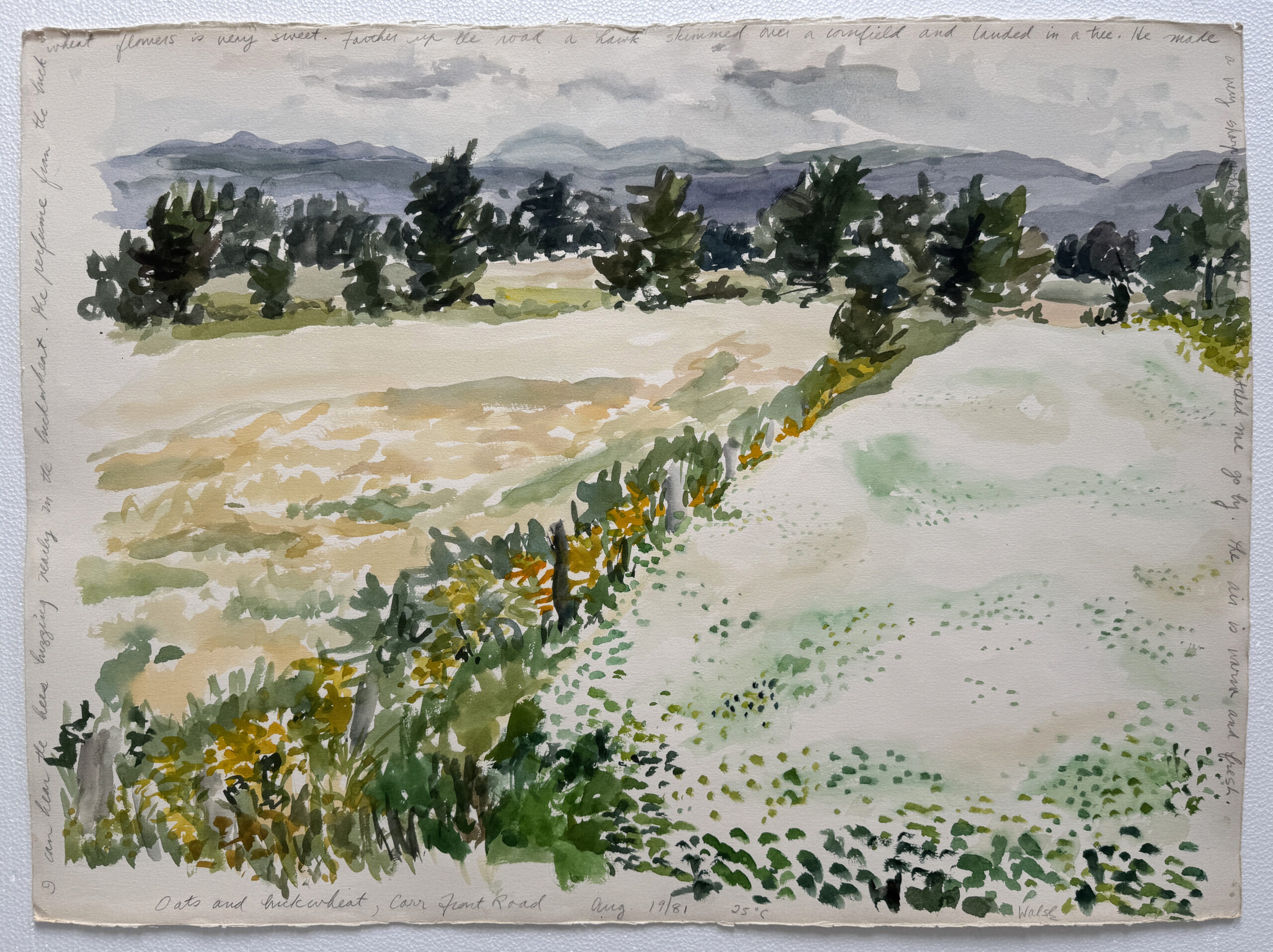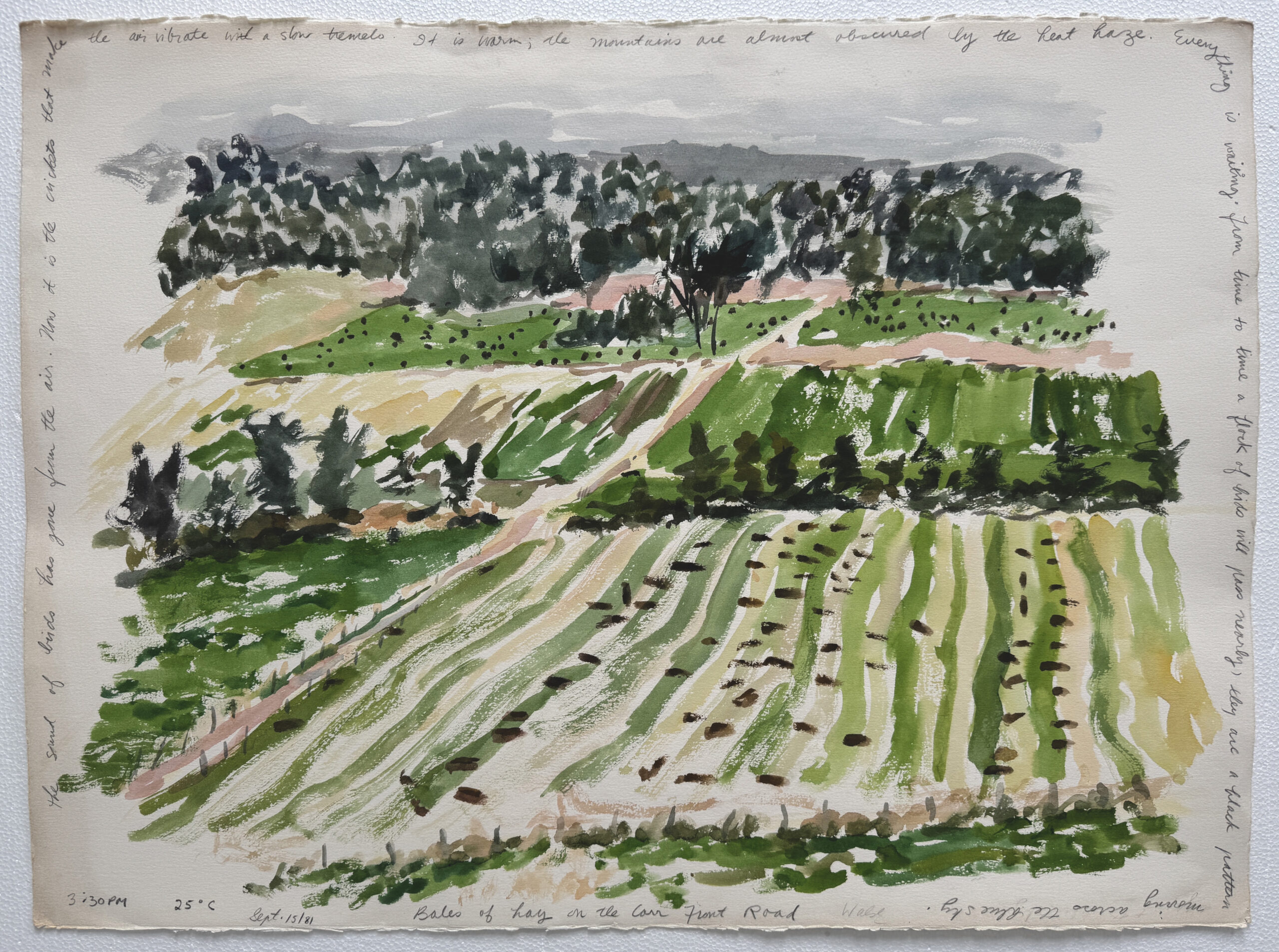 This exhibition revisits a selection of early work, done in 1980 and 1981, then jumps to the present day, showing work that was done in 2019 and 2021. Early work : Remembered Landscapes These early works play with the dichotomy of memory (the past) vs the present moment, and is also intended as an evocation to memory : how the present moment can entwine with past experiences, especially sense memories. These pieces often include references to temperature, sounds and smells, as well as visual cues. The work, while rooted in a particular location, is also open-ended, and can provoke feelings of connection, nostalgia, familiarity, regret, and a host of other sensations, feelings and responses in the viewer.
