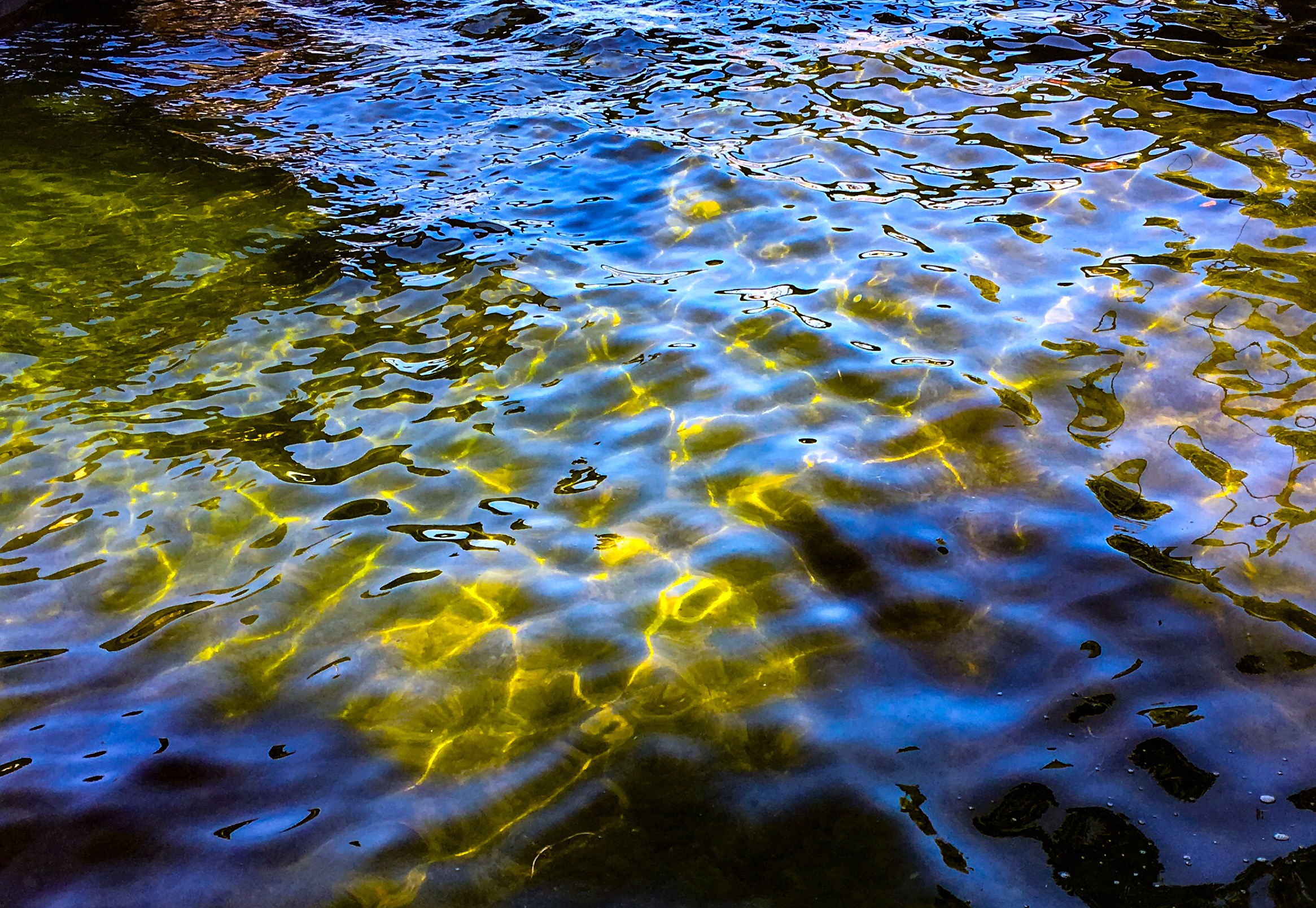 The current work references a lifelong study into how the present moment is constantly shifting ~ whether visibly in the form of shimmering reflections on water, or metaphysically in the experience of the impermanence of the present. Because of its mutable and transient nature, the subject of water can itself become a canvas upon which the artist can transmit emotional, psychological or philosophical states. Water then becomes a metaphor for the fragile nature of our existence.